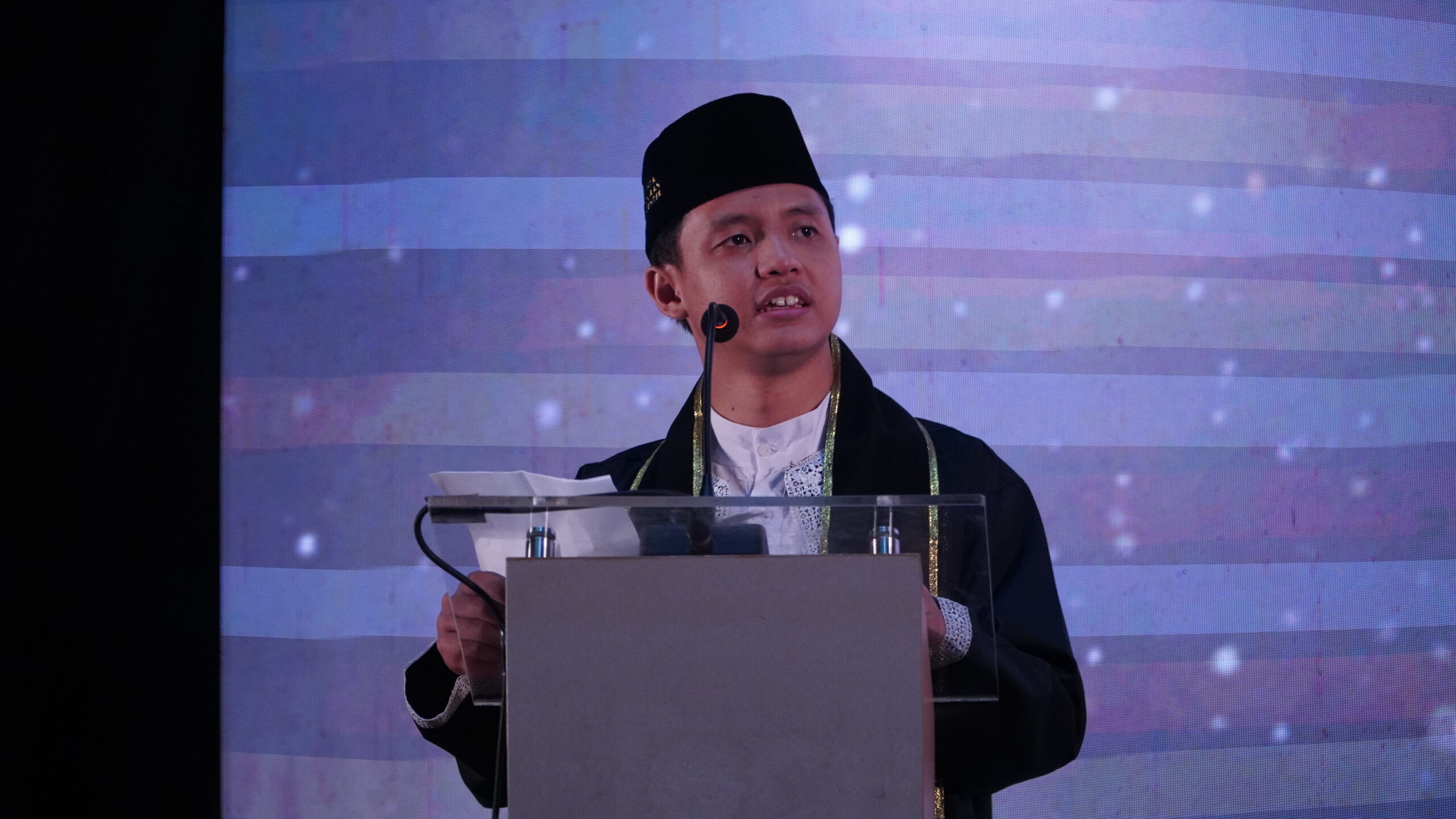 Dalam sesi orasi ilmiyyah, Muhammad Alfaruq selaku perwakilan wisudawan dan wisudawati menegaskan bahwa hari wisuda bukanlah tentang hafalan atau gelar semata, melainkan tentang lahirnya dai sebagai penggerak peradaban. Ia menekankan bahwa dai adalah pewaris para nabi yang tugasnya bukan berhenti pada ilmu di kepala atau hafalan di dada, tetapi turun ke tengah umat dan menghidupkan Al-Qur’an dalam realitas kehidupan. “Dai membawa Al-Qur’an keluar dari mushaf. Dia turun ke umat. Dai adalah mereka yang mengubah teks menjadi gerakan,” ungkapnya. Mengakhiri orasinya, ia mengajak seluruh wisudawan untuk menguatkan hati dan menegakkan kepala, karena kebangkitan umat dan perubahan sejarah menanti peran mereka, seraya menyampaikan rasa syukur kepada para guru dan pembina, khususnya Ustaz Fatih Karim, yang telah membersamai proses lahirnya dai-dai Qurani.