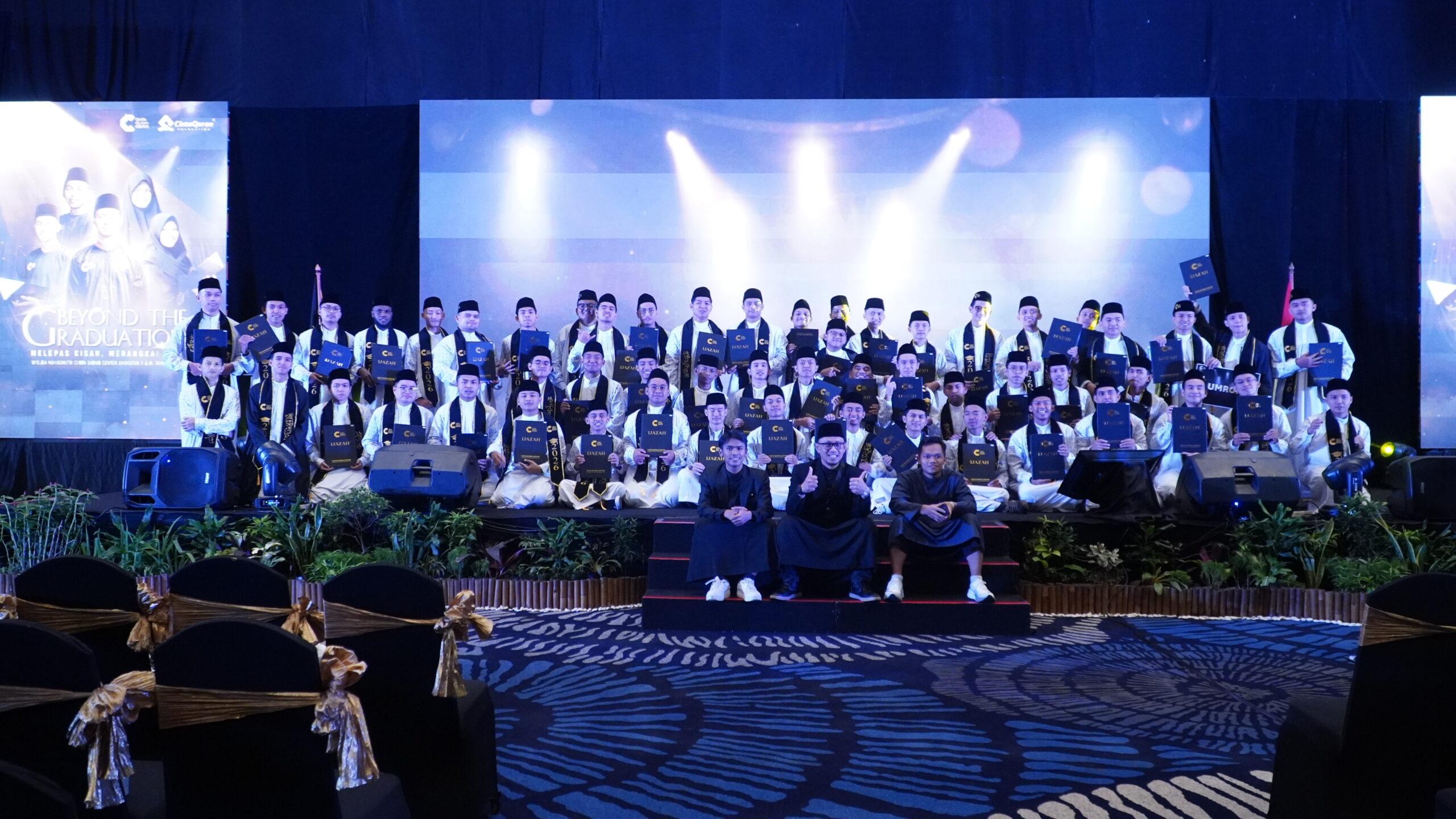 Hal yang cukup menarik dalam prosesi ini adalah fakta bahwa seluruh rangkaian Wisuda Cinta Quran Center 2026 ini digarap sepenuhnya oleh para santri. Mulai dari perencanaan konsep acara, teknis pelaksanaan, dokumentasi, hingga pengaturan alur wisuda, semuanya dikelola langsung oleh mahasantri CQC. Hal ini menjadi bukti bahwa proses pendidikan di CQC tidak hanya membentuk kemampuan akademik dan dakwah, tetapi juga melatih kemandirian, kepemimpinan, serta kemampuan manajerial santri dalam mengelola acara berskala besar secara profesional.