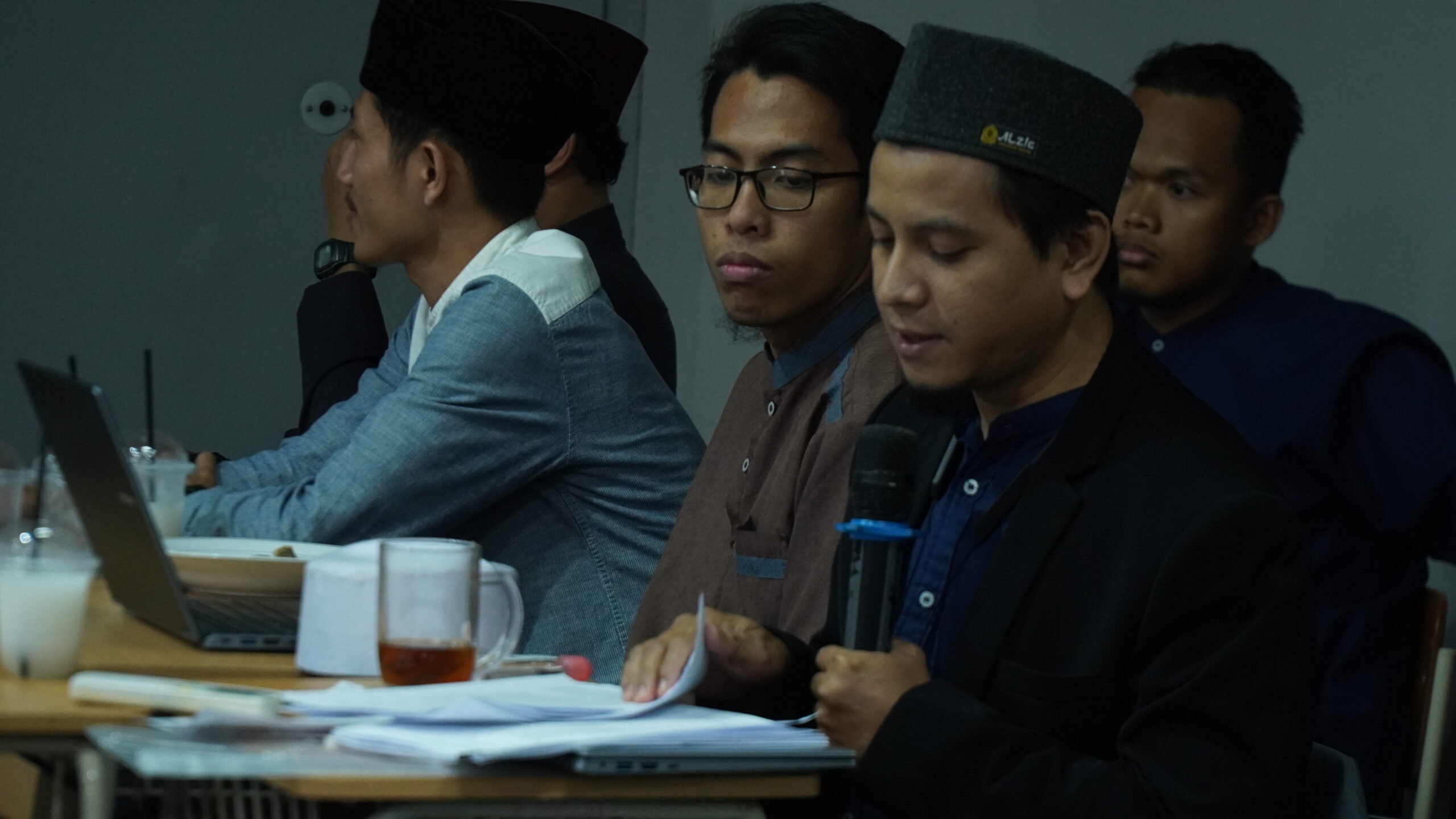 Kedua tim kemudian menerima masukan kritis dari dewan penguji. Ustadz M. Gustar Umam menanggapi paparan tim ikhwan, sementara Ustadzah Sri Rianti memberikan catatan untuk tim akhwat. Keduanya menekankan pentingnya memperkuat referensi dan memperbaiki sistematika makalah agar argumen lebih kokoh. Momen perkenalan pemateri ikhwan dengan julukan khas sempat menghidupkan suasana, begitu juga segmen tilawah Al-Qur’an dalam empat bahasa yang memberi warna berbeda pada acara malam itu.